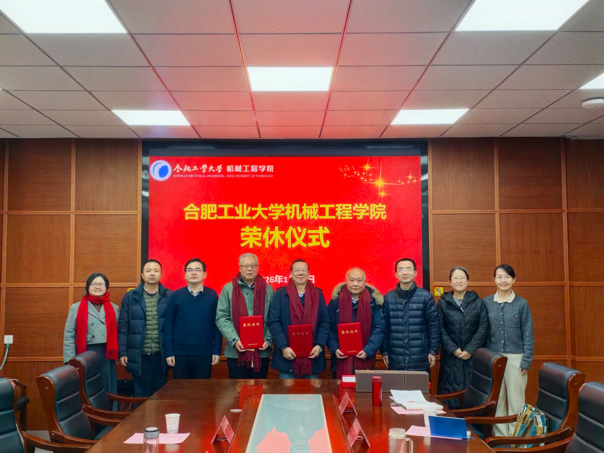 荣休仪式上,学院领导班子为荣休老师们送上真挚的祝福,颁发了荣休证书和纪念品,并合影留念。